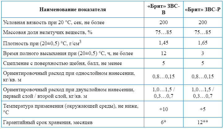Материалы «Брит» ЗВС-В и «Брит» ЗВС-Р равномерно наносят на предварительно очищенное и сухое асфальтобетонное в один или два слоя.